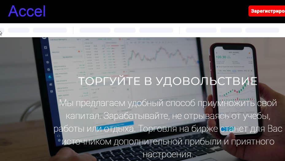 Содержание На главной странице сайта Accel–r.Trade есть убедительная рекламная информация, которая соответствует